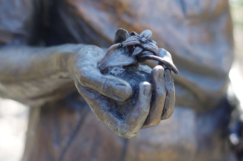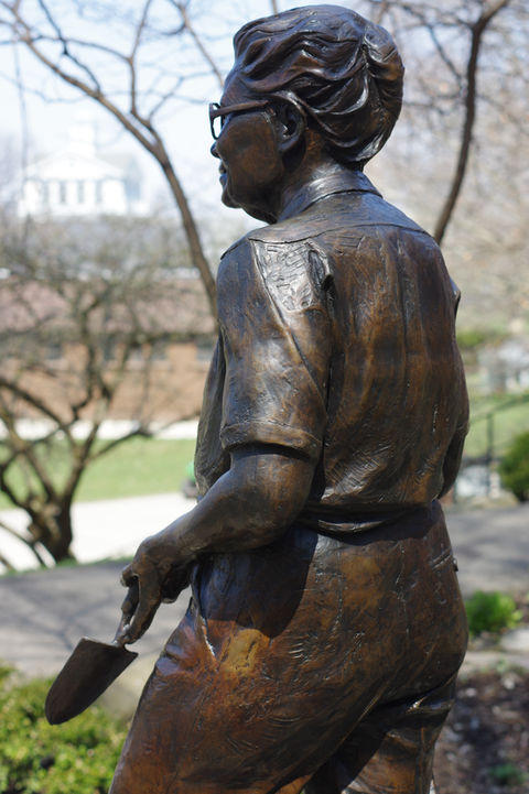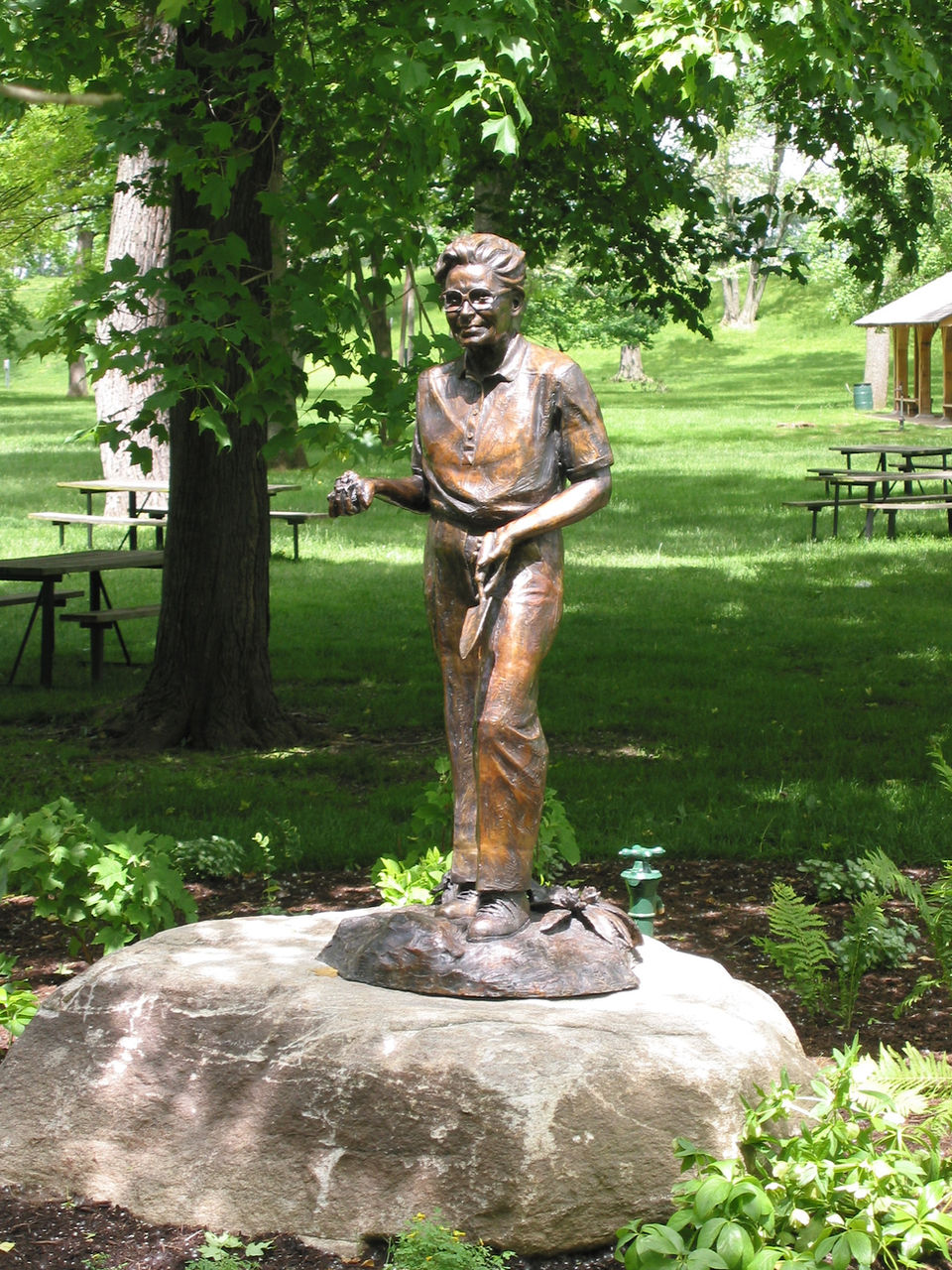 A life-size bronze figure of gardener, educator and conservationist commissioned by the Garden Club of Dayton, Ohio installed in Carillon Park, Dayton, OH (© 2004).